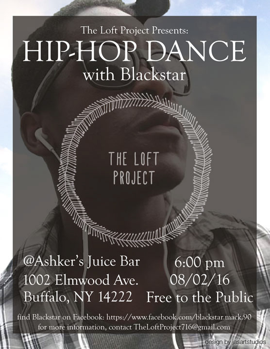 In a business venture, in collaboration with Askher's Juice Bar in Buffalo, NY, along with Jimmy "Big Rook" Hawkins, I was part of an exciting opportunity to host workshops open to the general public that gave exposure to the arts. We held hip-hop dance classes taught by well-known members of the dance community.